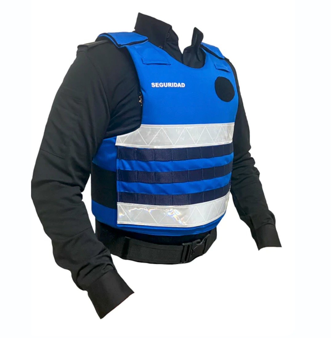 Antibalas con capacidad para parar balas del Calibre, 9mm, 357 Magnum, 44. Magnum. Anticuchillo con capacidad para parar armas punzo cortantes hasta 36 julios, navajas, cuchillos, machetes, destornilladores, punzones, agujas....