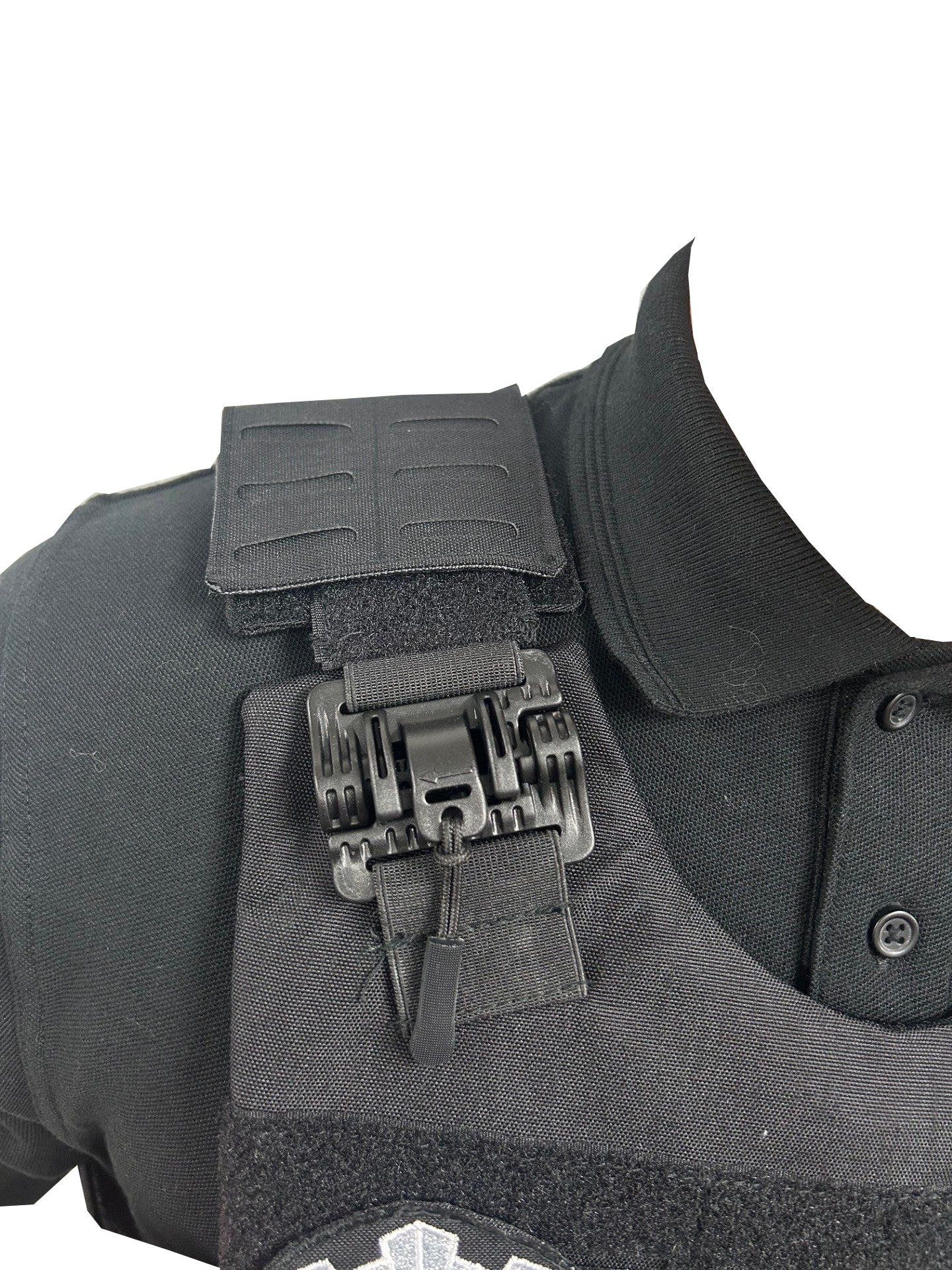 En este caso incluye en las fotos Cierre Quickrealease en hombros y abdomén (accesorios completamente opcionales), además de MOLLE LASER CUT en velcro en la zona del pecho.